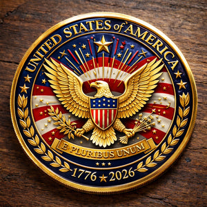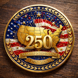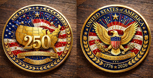 This commemorative coin honors 250 years of American independence through powerful national symbols, rendered in timeless, sculpted metal. It is a tribute to unity, strength, and the enduring spirit of the United States.