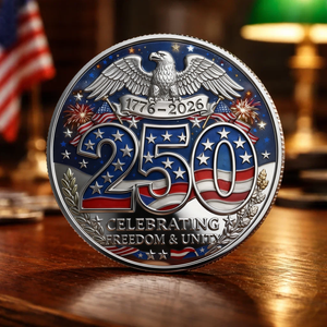 This commemorative coin marks a once-in-a-lifetime milestone: America’s 250th Anniversary (1776–2026). Rich in patriotic symbolism and historic imagery, it honors the nation’s enduring spirit of freedom, unity, and independence—a timeless keepsake for collectors, patriots, and history lovers alike 🪙❤️.
