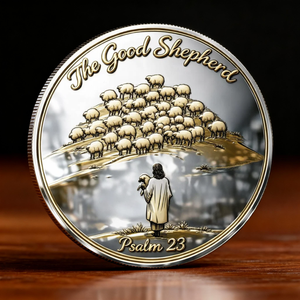 Inspired by Psalm 23, this commemorative coin transforms one of the most beloved passages of Scripture into a striking visual testimony. Every element is designed to communicate God’s presence, courage in darkness, and the promise of divine guidance 🙏.
