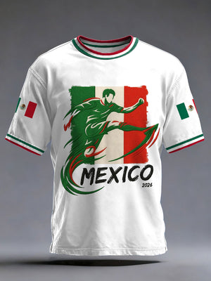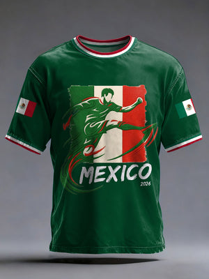 Men's 2026 Soccer Game Mexico Team Print Gift For Soccer Fans Casual Tee