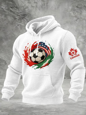 Men's Canadian Football Fan Color-Block Plaid Hooded Sweatshirt