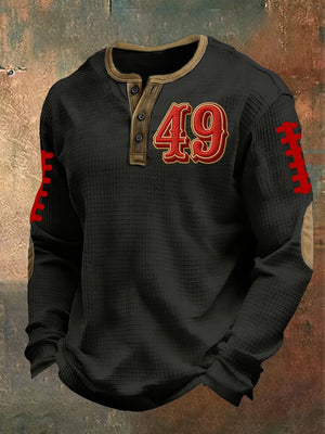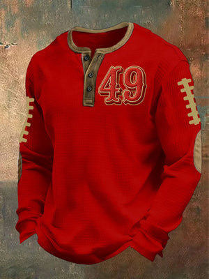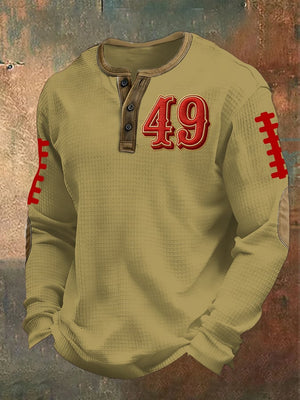 Men's Football Print Waffle Knit Henley Shirt