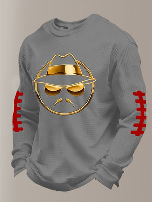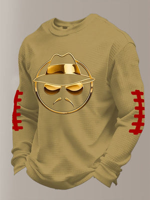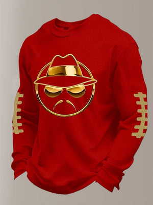 Men's Football Waffle Fabric Long-Sleeved T-Shirt