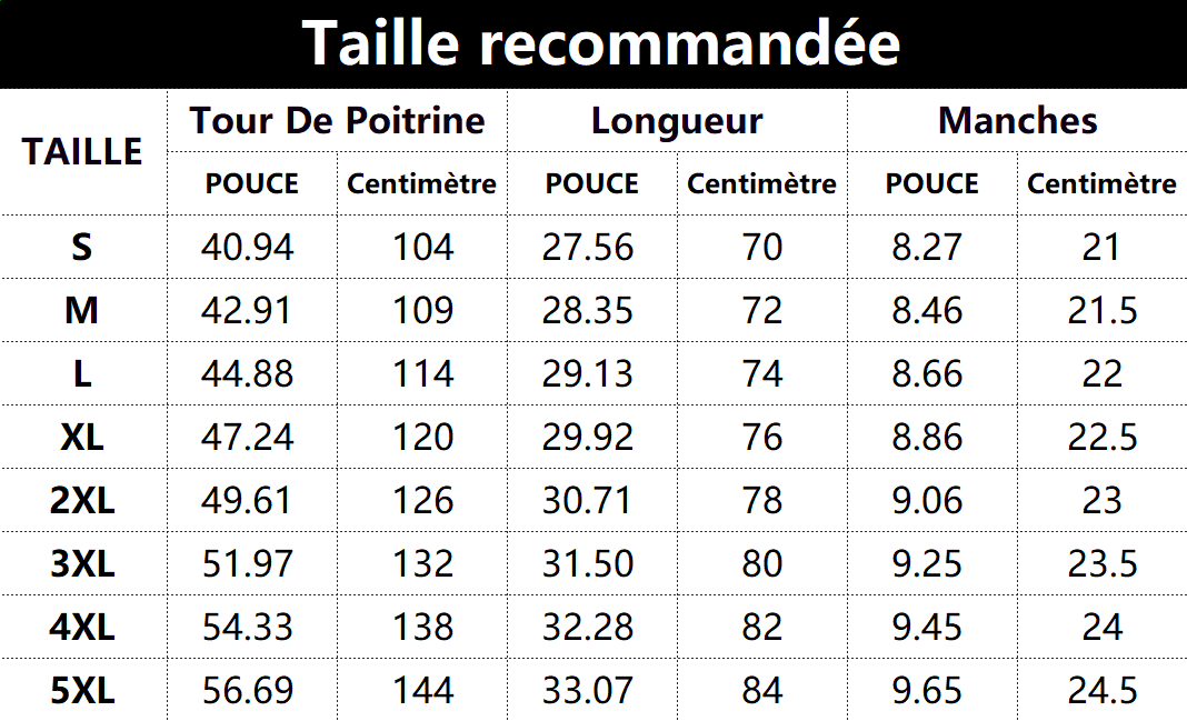 S, M, L, XL, 2XL, 3XL, 4XL, 5XL |