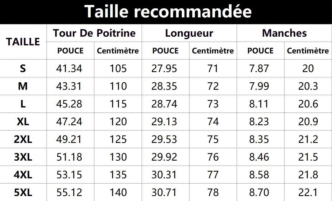 S, M, L, XL, 2XL, 3XL, 4XL, 5XL |