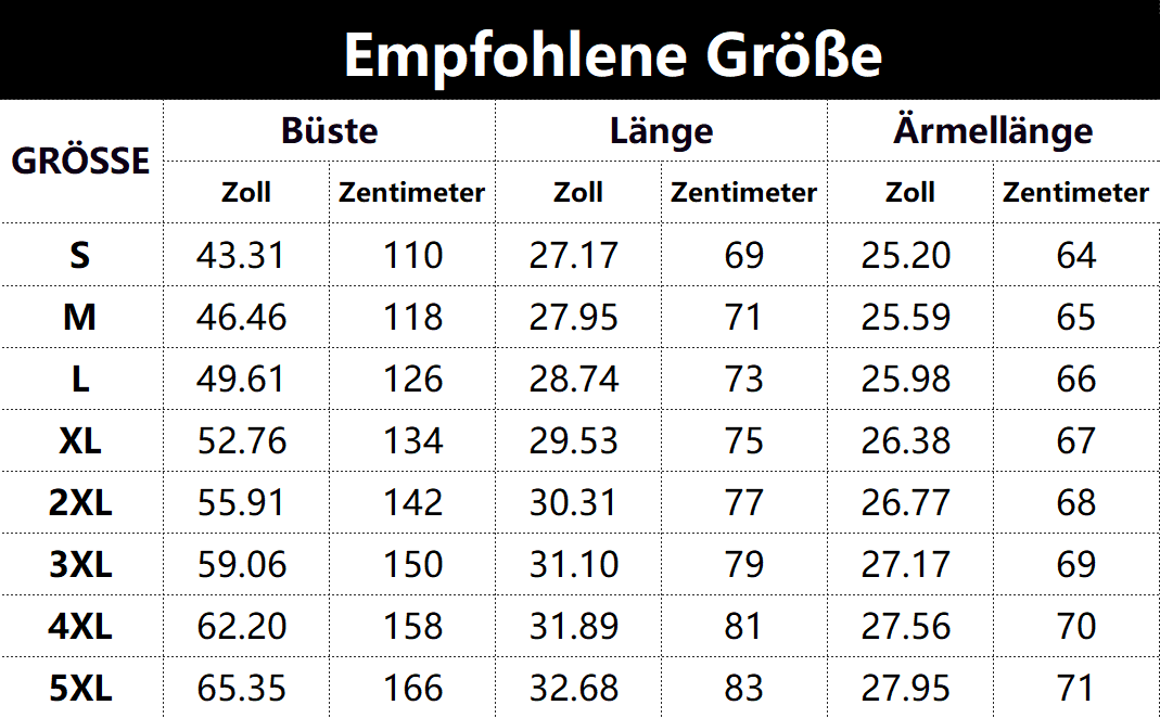 S, M, L, XL, 2XL, 3XL, 4XL, 5XL |