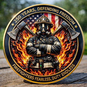 This is a tribute — struck in metal to honor 250 years of courage, sacrifice, and unwavering duty by America’s firefighters.
