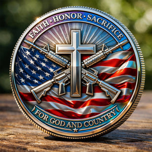 Honor Service Strength | Faith Honor Sacrifice | For God and Country | 3D Military Patriotic Collectible Coin