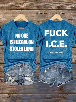 Women's NO ONE IS ILLEGAL ON STOLEN LAND Print T-Shirt