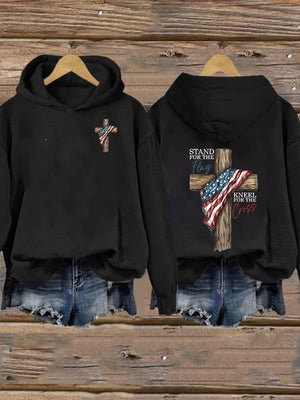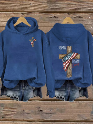 Women's Stand For The Flag Kneel For The Cross Printed Casual Hoodie