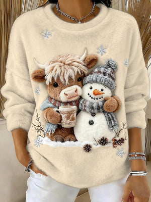 Women's Animal Highland Cow Yeti Art Print Crew Neck Top