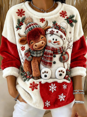 Women's Animal Highland Cow Art Print Crew Neck Top