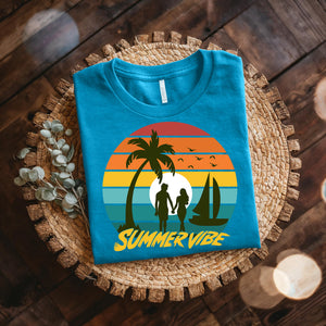 Couple On Vacation Unisex Vintage Print Short Sleeve