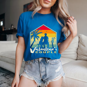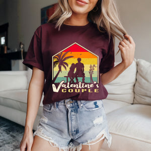 Couple On Vacation Women's Straight Shoulder Printed Short Sleeves