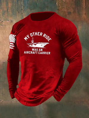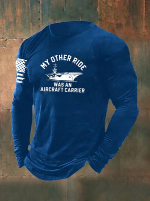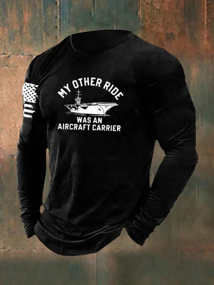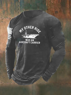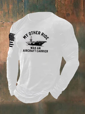 Men's My Other Ride was an Aircraft Carrier Pattern Long Sleeve 100% Cotton T-Shirt