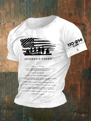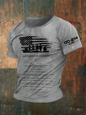 Men's Retro DD-214 Alumni Veteran's Creed I Am A Veteran. I Have Seen And Done Things You May Not Understand. I Am A Warrior. Print T-Shirt