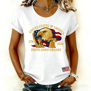 Women'S Casual Short-Sleeved T-Shirt With American 250th Anniversary Commemorative Print And Round Neckline.